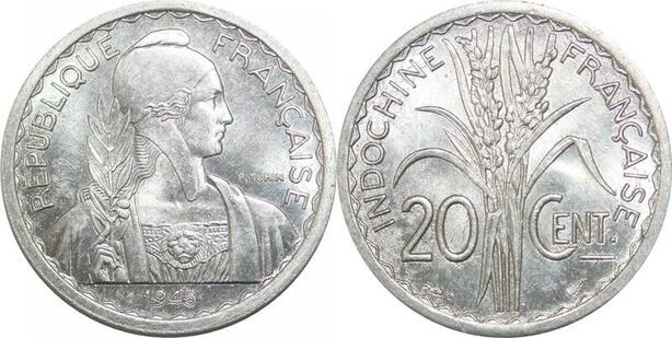 R2684 French Indochina 20 Cents 1945 C Castelsarrasin Turin UNC -> Make Offer
