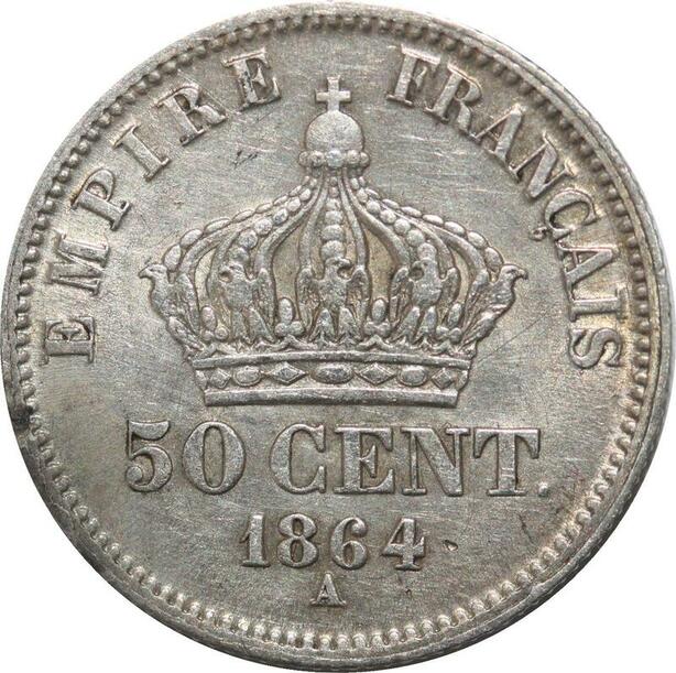 R2693 50 Centimes Napoléon III Tête Laurée 1864 A Paris Barre SUP -> Make Offer