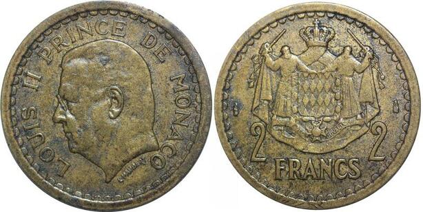 R2696 Monaco 2 Francs Louis II Prince Grimaldi 1945 Maubert AU -> Make Offer