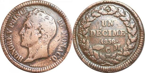 R2709 Monaco Un Decime Prince Honore V 1838 -> Make Offer