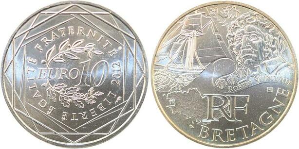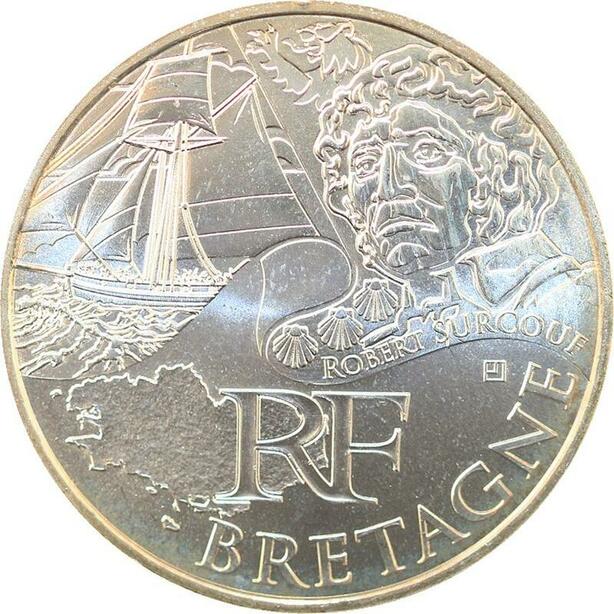 R2854 France 10 Euros Bretagne Robert Surcouf Monnaie de Paris Argent 2012 FDC