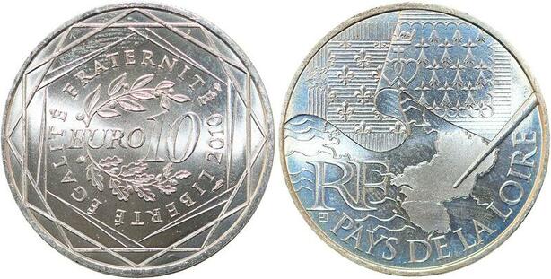 R2934 France 10 Euros Pays de la Loire Monnaie Paris Argent 2010 FDC > M Offer