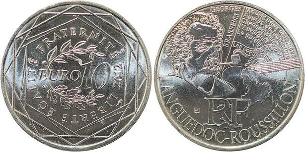R2978 France 10 Euros Languedoc Roussillon Brassens Monnaie de Paris Argent 2012