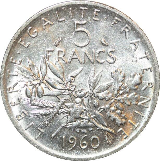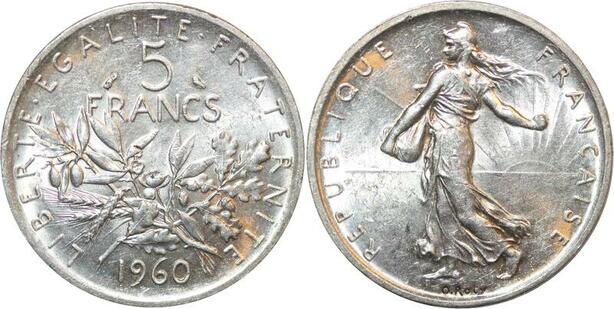 R2989 France 5 Francs Semeuse Roty 1960 Sortie Rouleau Argent FDC > Make Offer