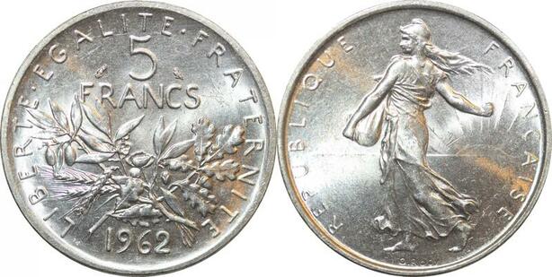R2992 France 5 Francs Semeuse Roty 1962 Sortie Rouleau Argent FDC > Make Offer