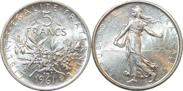 R2996 France 5 Francs Semeuse Roty 1961 Sortie Rouleau Argent FDC > Make Offer