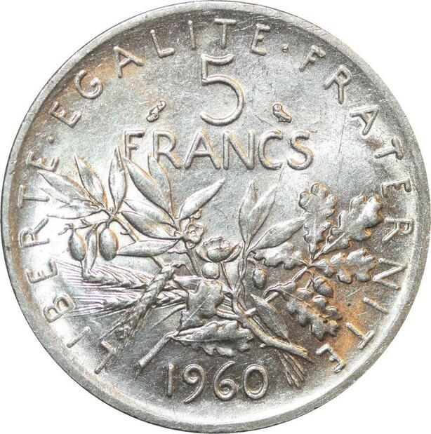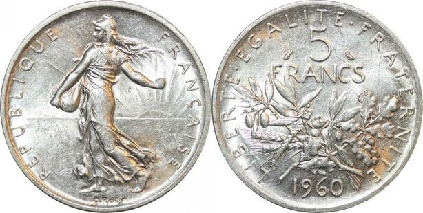 R2999 France 5 Francs Semeuse Roty 1960 Sortie Rouleau Argent FDC > Make Offer