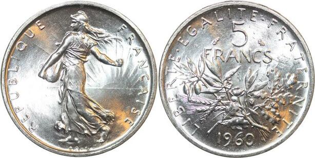 R3001 France 5 Francs Semeuse Roty 1960 Sortie Rouleau Argent FDC > Make Offer