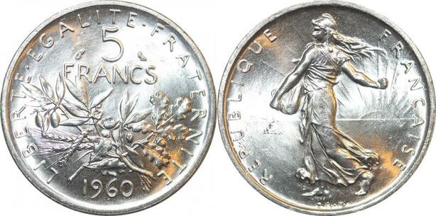 R3002 France 5 Francs Semeuse Roty 1960 Sortie Rouleau Argent FDC > Make Offer