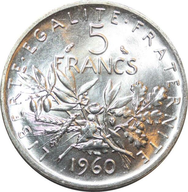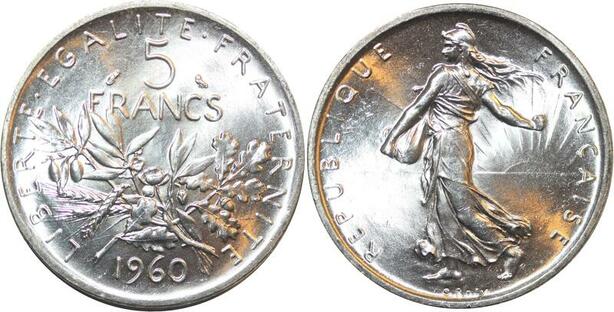 R3004 France 5 Francs Semeuse Roty 1960 Sortie Rouleau Argent FDC > Make Offer