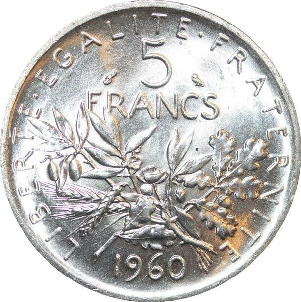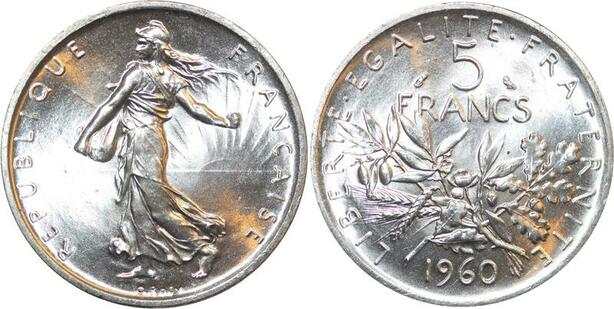R3007 France 5 Francs Semeuse Roty 1960 Sortie Rouleau Argent FDC > Make Offer