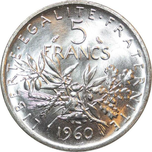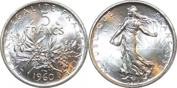 R3009 France 5 Francs Semeuse Roty 1960 Sortie Rouleau Argent FDC > Make Offer