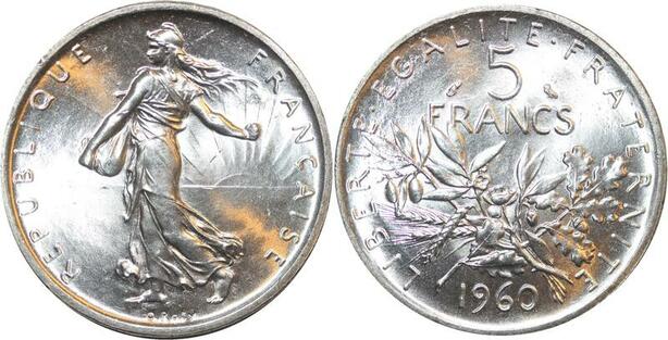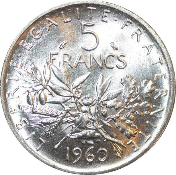 R3010 France 5 Francs Semeuse Roty 1960 Sortie Rouleau Argent FDC > Make Offer