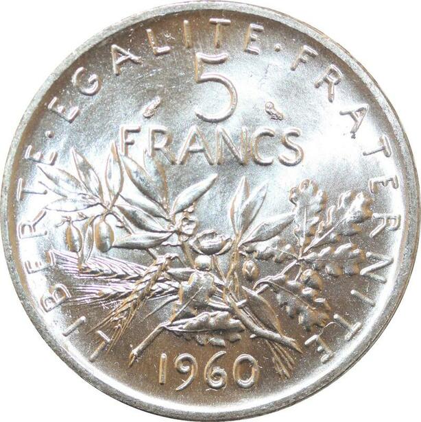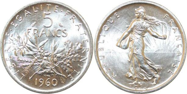 R3012 France 5 Francs Semeuse Roty 1960 Sortie Rouleau Argent FDC > Make Offer