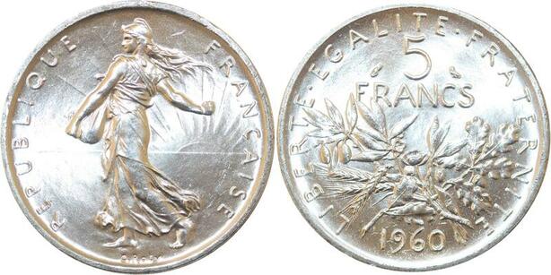 R3014 France 5 Francs Semeuse Roty 1960 Sortie Rouleau Argent FDC > Make Offer