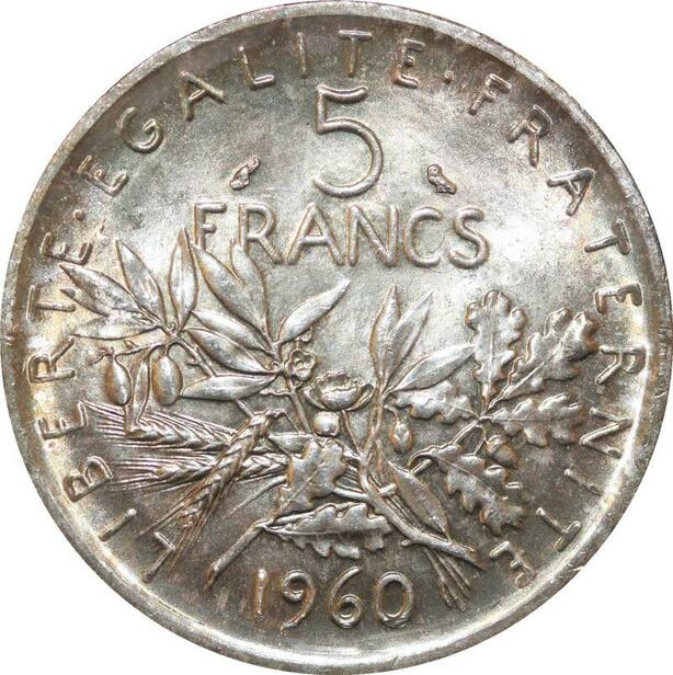 R3019 France 5 Francs Semeuse Roty 1960 Sortie Rouleau Argent SUP > Make Offer