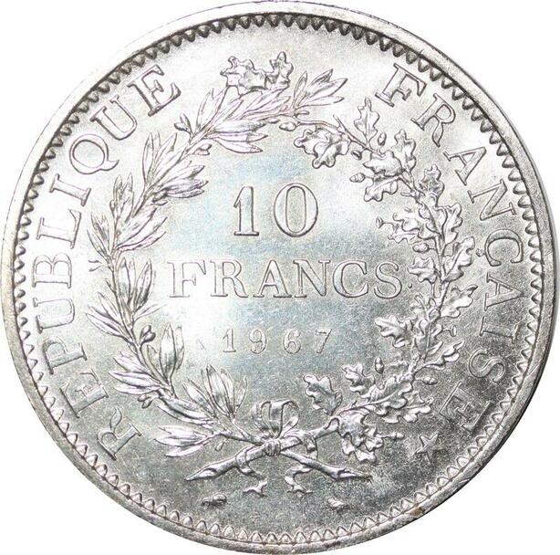 R3042 France 10 Francs Hercule Dupré 1967 Variété É Sortie Rouleau Argent FDC