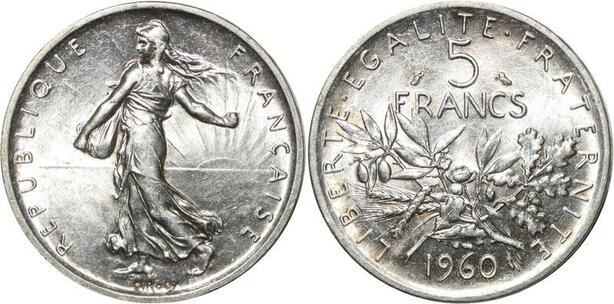 R3056 France 5 Francs Semeuse Roty 1960 Sortie Rouleau Argent FDC > Make Offer