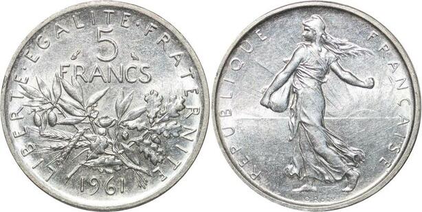 R3058 France 5 Francs Semeuse Roty 1961 Sortie Rouleau Argent FDC > Make Offer
