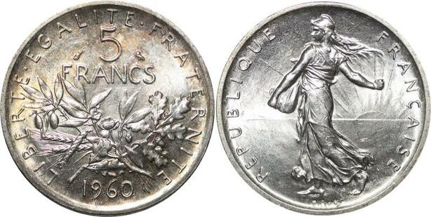 R3059 France 5 Francs Semeuse Roty 1960 Sortie Rouleau Argent FDC > Make Offer