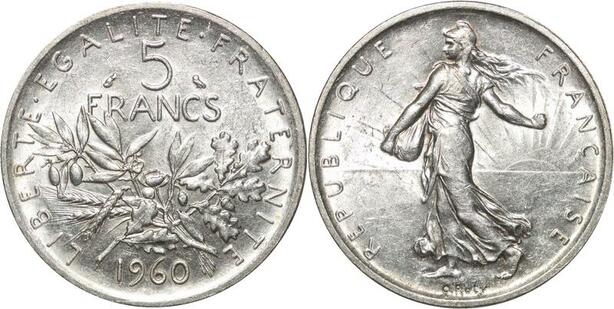 R3062 France 5 Francs Semeuse Roty 1960 Sortie Rouleau Argent FDC > Make Offer