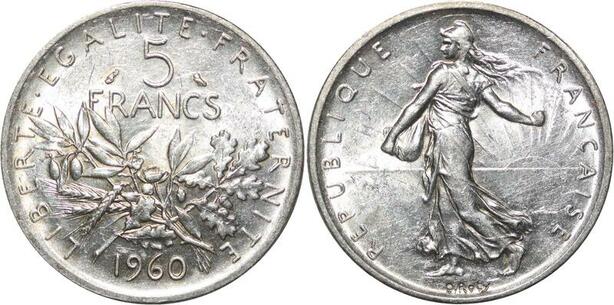 R3064 France 5 Francs Semeuse Roty 1960 Sortie Rouleau Argent FDC > Make Offer