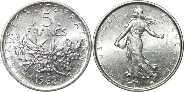 R3068 France 5 Francs Semeuse Roty 1962 Sortie Rouleau Argent FDC > Make Offer