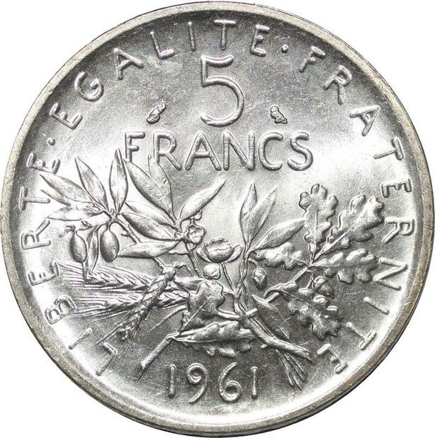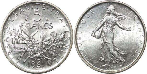 R3070 France 5 Francs Semeuse Roty 1961 Sortie Rouleau Argent FDC > Make Offer