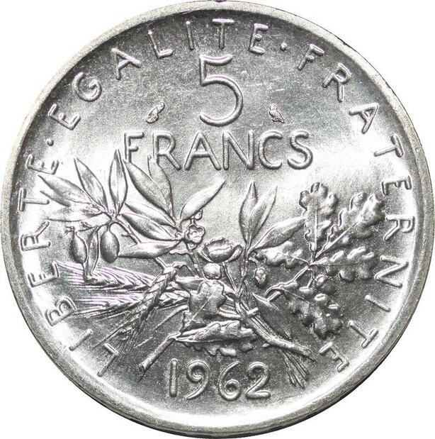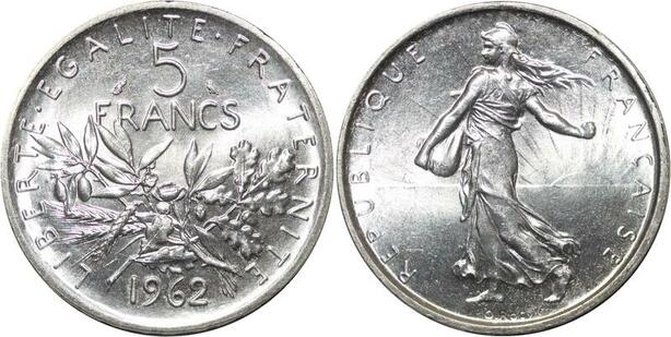 R3071 France 5 Francs Semeuse Roty 1962 Sortie Rouleau Argent FDC > Make Offer