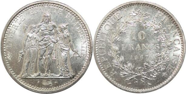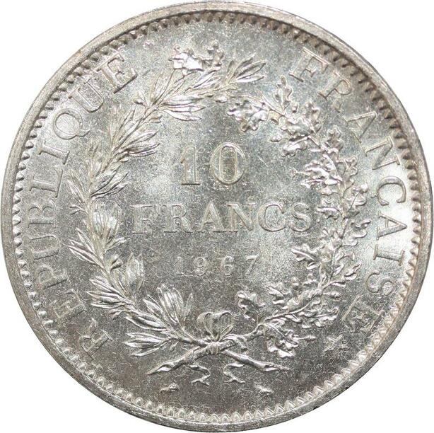 R3097 France 10 Francs Hercule Dupré 1967 Variété É Sortie Rouleau Argent FDC