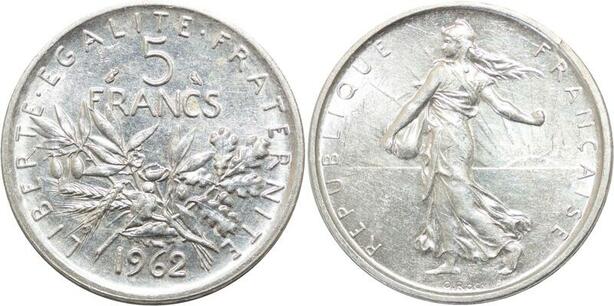 R3112 France 5 Francs Semeuse Roty 1962 Sortie Rouleau Argent SPL -> Make Offer