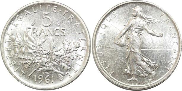 R3114 France 5 Francs Semeuse Roty 1961 Sortie Rouleau Argent FDC -> Make Offer