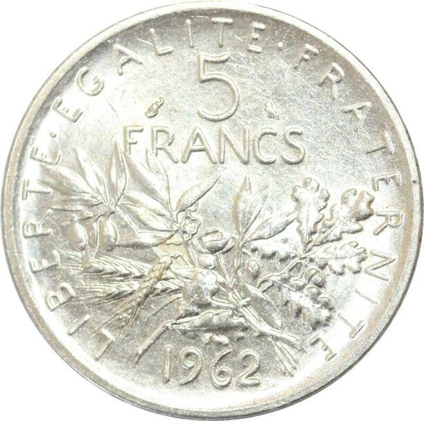 R3117 France 5 Francs Semeuse Roty 1962 Sortie Rouleau Argent SPL -> Make Offer