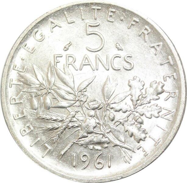 R3122 France 5 Francs Semeuse Roty 1961 Sortie Rouleau Argent SPL -> Make Offer