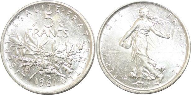 R3123 France 5 Francs Semeuse Roty 1961 Sortie Rouleau Argent FDC -> Make Offer