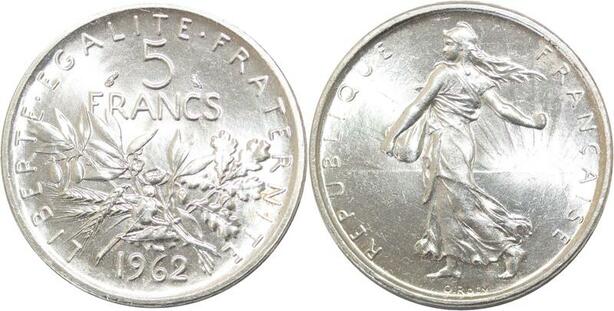 R3124 France 5 Francs Semeuse Roty 1962 Sortie Rouleau Argent FDC -> Make Offer