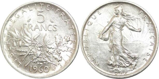 R3132 France 5 Francs Semeuse Roty 1960 Sortie Rouleau Argent FDC -> Make Offer