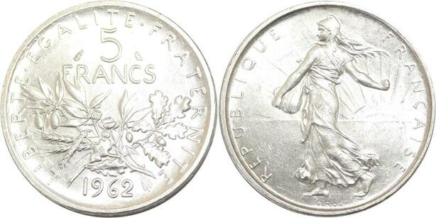 R3143 France 5 Francs Semeuse Roty 1962 Sortie Rouleau Argent FDC -> Make Offer