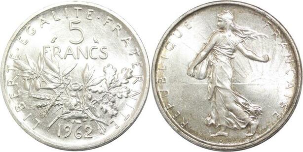 R3144 France 5 Francs Semeuse Roty 1962 Sortie Rouleau Argent FDC -> Make Offer