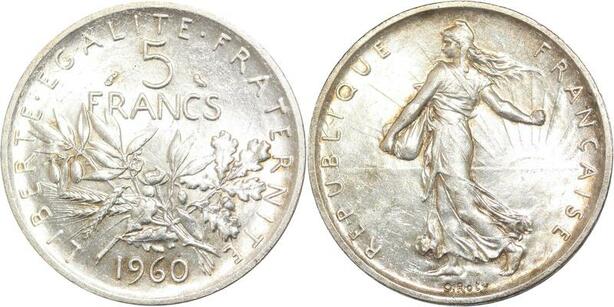 R3151 France 5 Francs Semeuse Roty 1960 Sortie Rouleau Argent FDC -> Make Offer