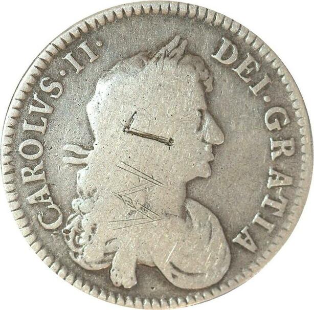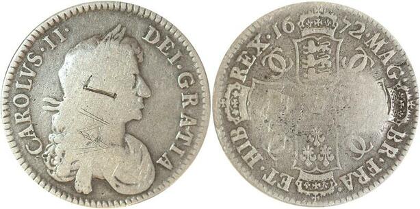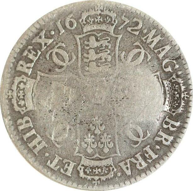 R3187 Rare United Kingdom 1/2 Crown Charles II 1672 Silver -> Make Offer
