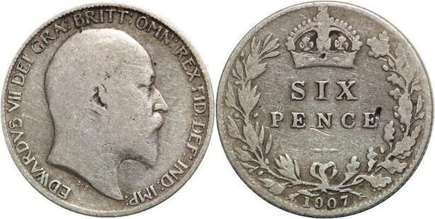 R3193 United Kingdom 6 Pence Edward VII 1907 Silver -> Make Offer