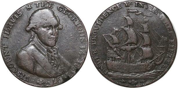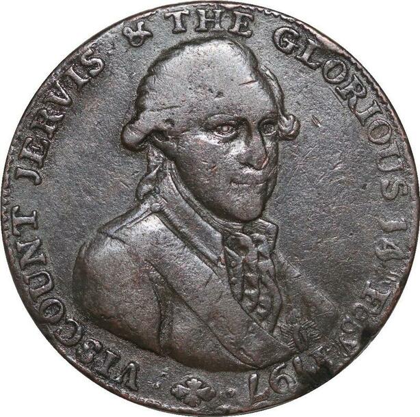 R3209 Rare United Kingdom Hampshire Portsmouth Half Penny John Jervis 1797 Offer