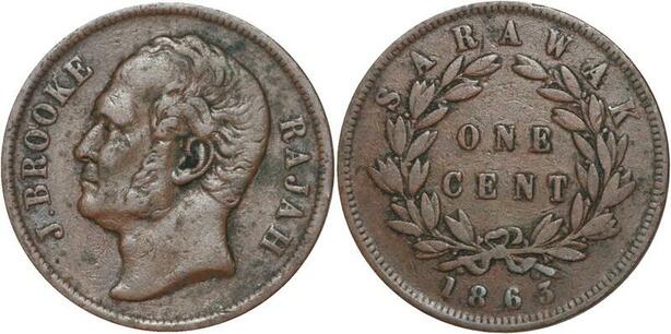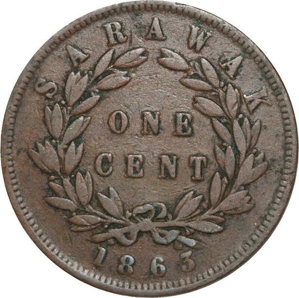 R3218 Rare Malaysia Sarawak Borneo One Cent James Brooke 1863 -> Make Offer