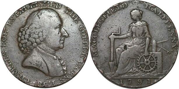 R3222 United Kingdom Cheshire Macclesfield Half Penny Charles Roe 1791 ->M Offer