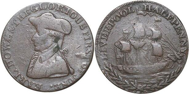 R3235 United Kingdom Lancaster Half Penny Richard Howe 1795 -> Make Offer