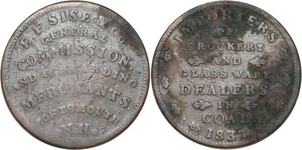 R3241 USA New Hampshire Portsmouth Half Penny Coal 1837 -> Make Offer