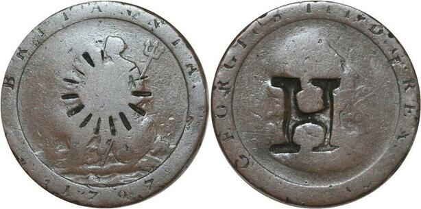 R3247 United Kingdom One Penny George III 1797 Countermark H -> Make Offer