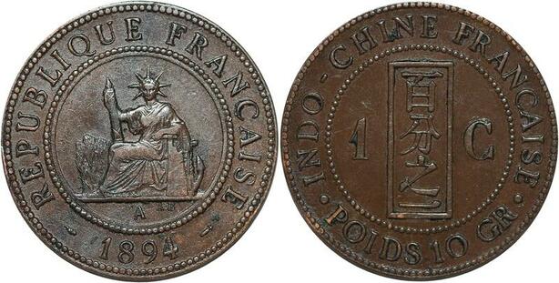 R3292 Rare Indochina 1 Cent Liberty 1894 A Paris AU -> Make Offer