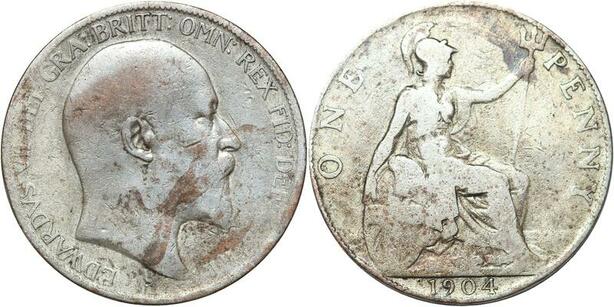 R3306 United Kingdom Penny Edward VII 1904 Silvered -> Make Offer